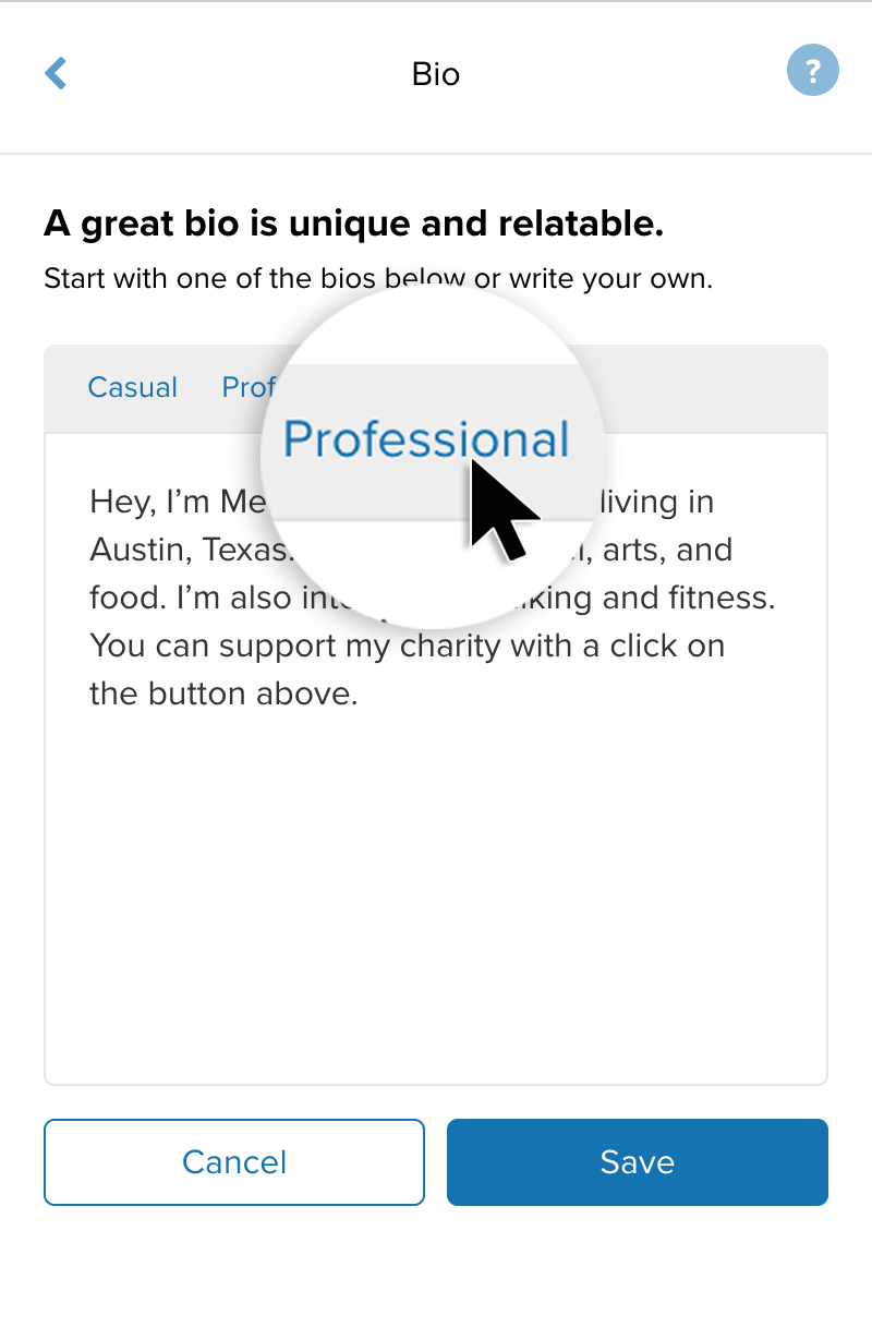 If you're hitting writer's block or looking for a quick fix, give Bio Writer a try by clicking 'casual' or 'professional' at the top of your Bio box.